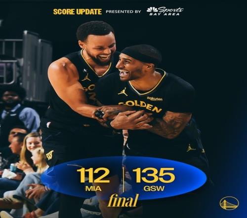 体育播报1月20日宣 NBA常规赛,勇士主场135-112大胜热火。