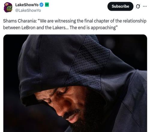 但根据ESPN名记Shams的报道,现实状况是湖人与詹姆斯的关系正在走向终结,无论最终结果如何,这段关系都快走到尽头了,并且结局可能都不那么体面。("The end is near with this relationship either however you wanna slice it. And so the end... there always seems to be some sort of, you know, storyline with that, and it can be unceremonious at different points.")