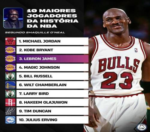 奥尼尔评心中NBA历史前十!詹姆斯只排名第三库里落榜邓肯第九