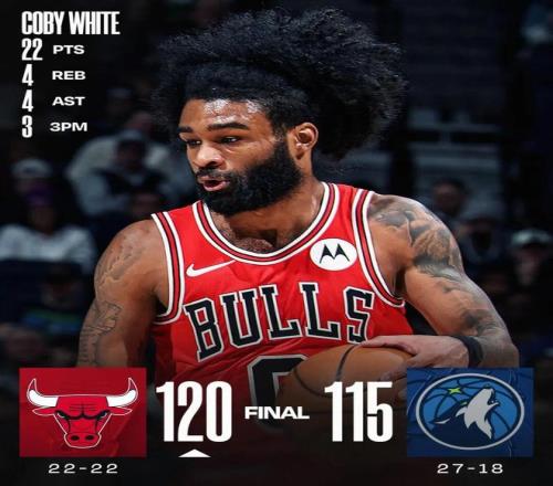值得一提的是,就在上一场比赛,公牛还坐镇主场138-110终结了快船的六连胜,那场比赛怀特的表现也是非常出色:全场出战30分钟,投篮16中9,三分10中6,罚球3中3,拿下27分2篮板6助攻,正负值+15。