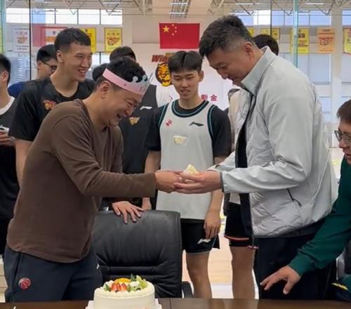 广东为领队庆生!杜锋讲话并获高待遇,全员用力按蛋糕,奎因太坏