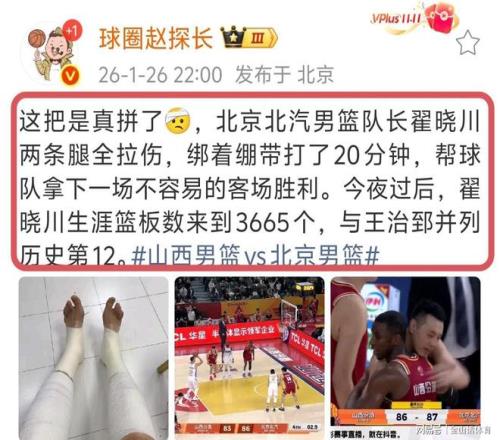 硬汉!32岁老将两腿全拉伤,缠满绷带打20分钟,媒体人真是拼了
