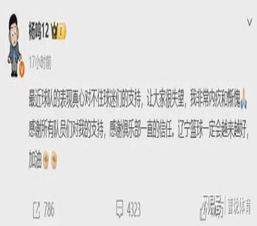 杨铭主教练在这个时候离开,很多球迷都认为是因为战绩不理想而离开的。同时很多球迷疑惑,杨铭离开辽宁男篮是主动离开还是被动离开呢?从一些媒体人和一些事情爆料来看,杨铭应该是自己主动离开辽宁男篮的,杨铭最近在社交媒体发文表示:“最近球队的表现真心对不住球迷们的支持,让大家很失望,我非常内疚和惭愧。”