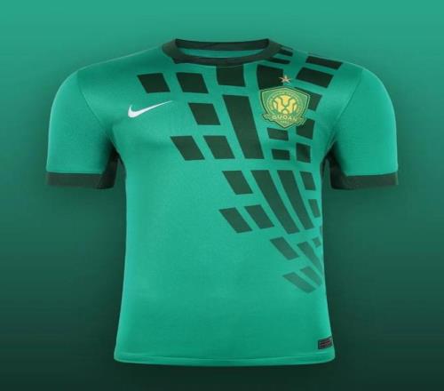 河南队主场球衣以红色为主色调,配以绿色纹理,将城市自然气息与中原铁血精神融为一体。