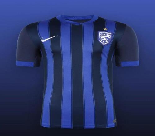 武汉三镇主场球衣采用经典的蓝黑色条纹设计,象征着长江汉水在此交融汇聚,孕育出一代又一代的武汉足球文化。