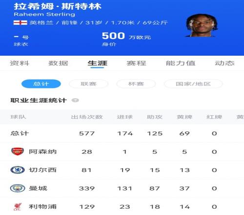 目前,斯特林的下家并未确定,但他的职业生涯效力过的四支球队全是豪门:利物浦、曼城、切尔西、阿森纳。