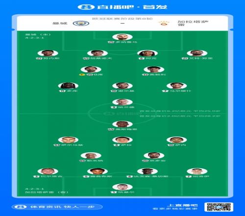 曼城vs加拉塔萨雷首发:萨内京多安战旧主!哈兰德、马尔穆什先发