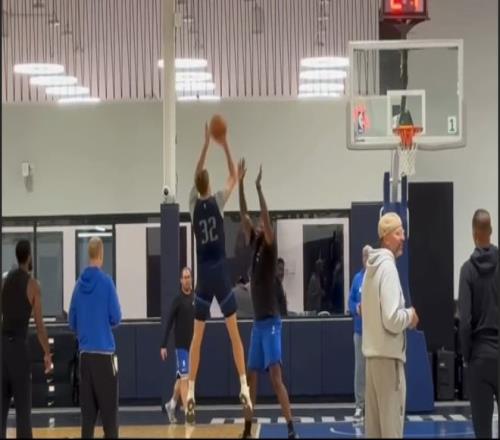 而另一边的克努佩尔,把 NBA 的三分线当成了自己的后花园。他不仅投得准,更投得 “疯”:仅用 29 场比赛就投进 100 记三分,创造 NBA 历史上最快达成此成就的新秀纪录;三分命中率一度逼近 46%,场均能稳定贡献 3.6 记三分,成为联盟最恐怖的外线火力点。