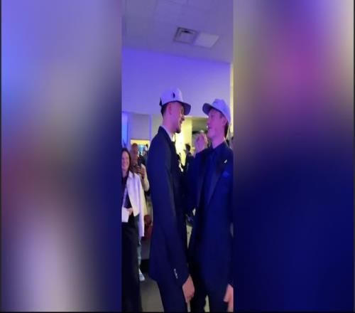 在NBA选秀抽签当晚,弗拉格、克努佩尔并排而坐。