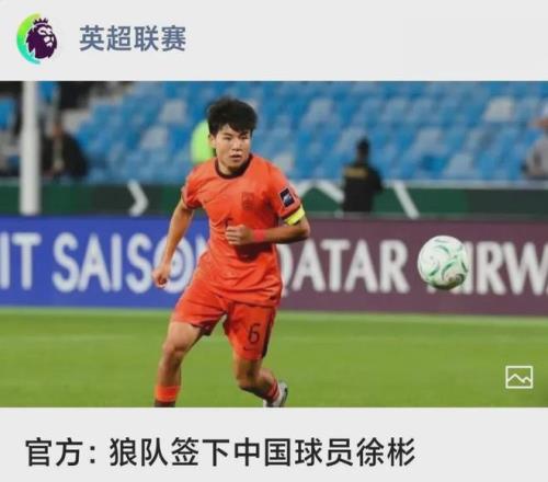 英超联赛重点推出徐彬加盟狼队的内容。