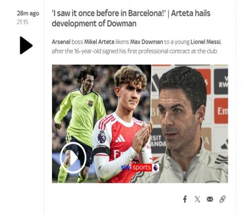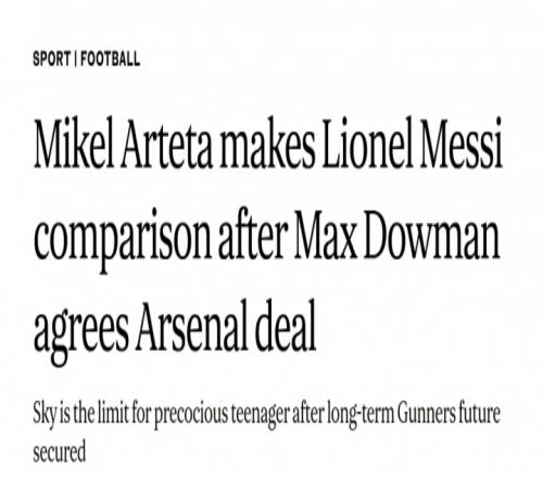 此后多家英媒发布文章,表示阿尔特塔将道曼与梅西相比较↓